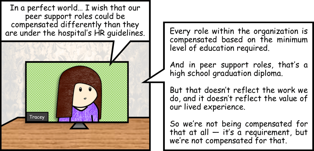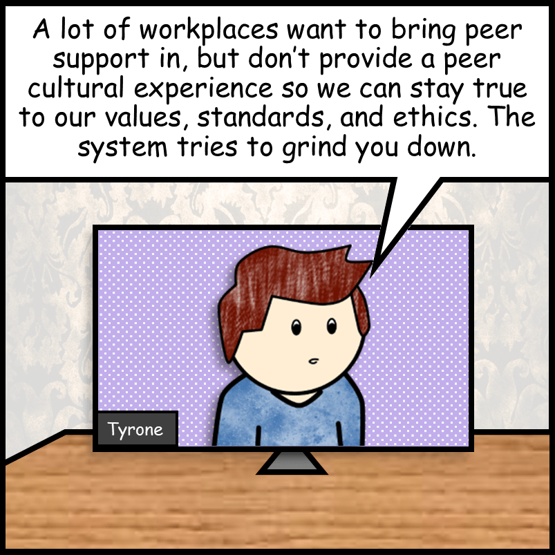 “Professionalism means having a community and culture that oversees, upholds, and protects the values, principles and standards of peer support, that allows us the opportunity and foundation to share our unique expertise and avoid peer drift and exploitation.”